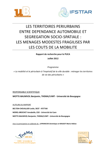 Les territoires périurbains entre dépendance automobile et ségrégation socio-spatiale, les ménages modestes fragilisés par les coûts de la mobilité