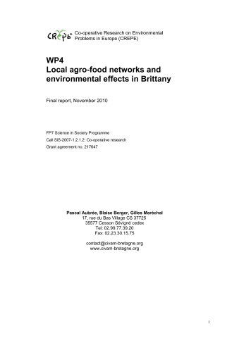 Pascal Aubrée, Blaise Berger, Gilles Maréchal. Local agro-food networks and environmental effects in Brittany. [Research Report] FRCIVAM Bretagne. 2010. ⟨halshs-01502529⟩