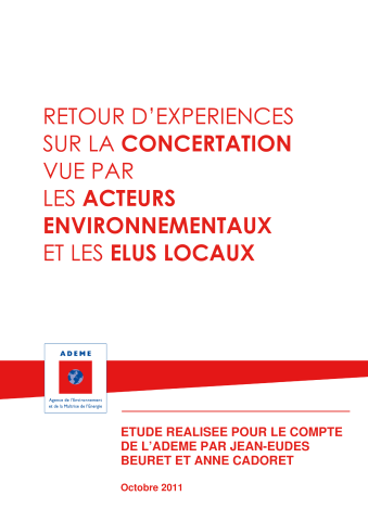 Jean-Eudes Beuret, Anne Cadoret. Retour d'expériences sur la concertation vue par les acteurs environnementaux et les élus locaux,. [Rapport de recherche] ADEME. 2011. ⟨hal-00907276⟩