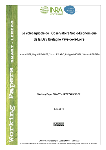 Laurent Piet, Magalie Fevrier, Yvon Le Caro, Philippe Michel, Vincent Pereira. Le volet agricole de l’Observatoire Socio-Économique de la LGV Bretagne Pays-de-la-Loire. [Travaux universitaires] UMR SMART - LERECO; UMR ESO, Espaces et Sociétés; Observatoire socio-économique de la LGV Bretagne Pays-de-la-Loire. 2019, 35 p. ⟨hal-02162574⟩