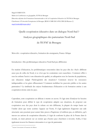 Quelle coopération éducative dans un dialogue Nord/Sud ? Analyses géographiques des partenariats Nord/Sud de l'IUFM de Bretagne