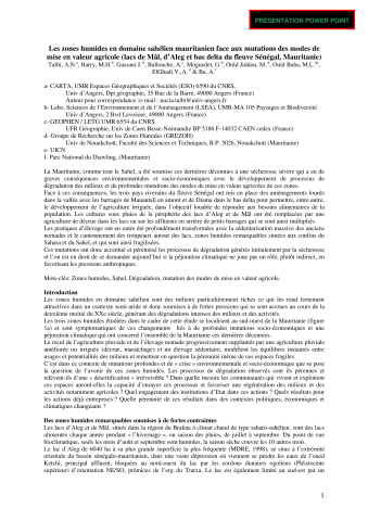 Les zones humides en domaine sahélien face aux mutations des modes de mise en valeur agricoles (lacs de Mal, d'Aleg et bas delta du fleuve Sénégal)