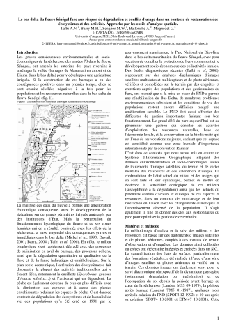 Le bas delta du fleuve Sénégal face aux risques de dégradation et conflits d’usage dans un contexte de restauration des écosystèmes et des activités. Approche par les outils d’analyse spatiale