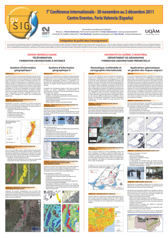 Yves Baudouin, Florent Demoraes, Erwan Quesseveur, Yann Roche. Intégration de gvSIG dans l’enseignement - Expérience croisée à l'Université du Québec à Montréal et à l'Université Rennes 2 . Septième conférence internationale de gvSIG, décembre 2011, Valencia, Espagne, Nov 2011, Valencia, Espagne. 2011. ⟨hal-01280485⟩