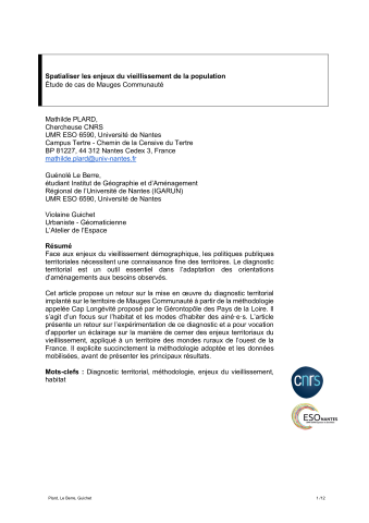Mathilde Plard, Guénolé Le Berre, Violaine Guichet. Spatialiser les enjeux du vieillissement de la population : Étude de cas de Mauges Communauté. 2019. ⟨hal-02176259⟩