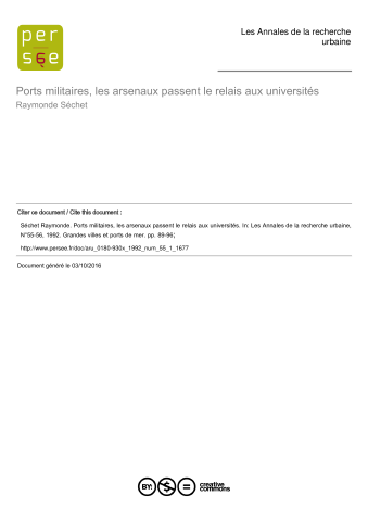 Raymonde Séchet. Ports militaires, les arsenaux passent le relais aux universités. Les Annales de la Recherche Urbaine, PUCA, 1992, pp.88-96. ⟨halshs-01095659⟩