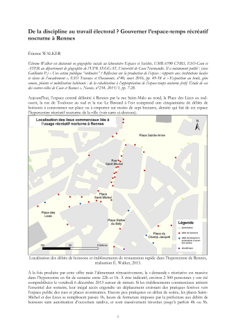 Etienne Walker. De la discipline au travail électoral ? Gouverner l’espace-temps récréatif nocturne à Rennes. Cultures & conflits, L'Harmattan, 2017, pp.123-143. ⟨10.4000/conflits.19477⟩. ⟨hal-02011194⟩