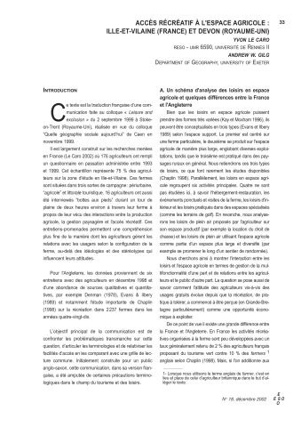 Yvon Le Caro, Andrew Gilg. Accès récréatif à l'espace agricole : Ille-et-Vilaine (France) et Devon (Royaume-Uni). ESO Travaux et Documents, Espaces et SOciétés - UMR 6590, 2002, pp.33-41. ⟨halshs-00638103⟩