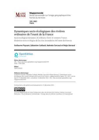 Guillaume Paysant, Sébastien Caillault, Nathalie Carcaud, Régis Barraud. Dynamiques socio-écologiques des rivières ordinaires de l’ouest de la France. M@ppemonde, Maison de la géographie, 2021. ⟨halshs-03476908⟩