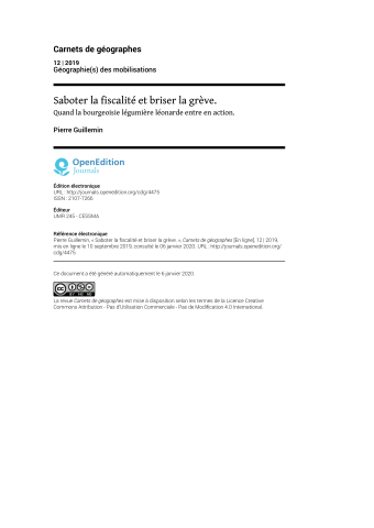 Pierre Guillemin. Saboter la fiscalité et briser la grève. Quand la bourgeoisie légumière léonarde entre en action. Carnets de géographes, UMR 245 - CESSMA, 2019, Géographie(s) des mobilisations, 12, ⟨10.4000/cdg.4475⟩. ⟨halshs-02640791⟩