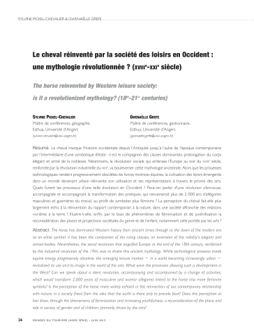 une mythologie révolutionnée ? (XVIIIe-XXIe siècle). Mondes du tourisme, Paris: Éd. touristiques européennes, 2015, Cheval, tourisme et sociétés / Horse, tourism ans societies, pp.26-49. ⟨hal-01572270⟩