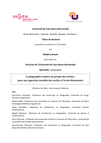 Médéric Briand. Geography school teaching through the prism of school outings : for an approach by means of sensitiveness at primary school. Géographie. Université de Caen Basse-Normandie, 2014. Français. ⟨tel-01145646⟩
