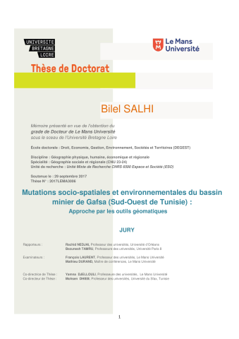Mutations socio-spatiales et environnementales du bassin minier de Gafsa (Sud Ouest de Tunisie) : apport des outils géomatiques