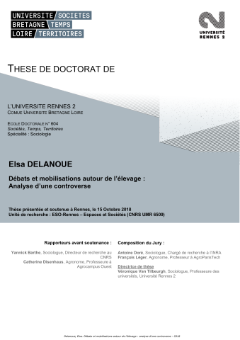 Elsa Delanoue. Débats et mobilisations autour de l’élevage : analyse d’une controverse. Sociologie. Université Rennes 2, 2018. Français. ⟨NNT : 2018REN20040⟩. ⟨tel-01902653⟩