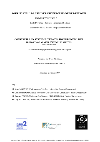 Yves Auneau. Construire un système d'innovation régionalisée : propositions à partir d'exemples bretons. Géographie. Université Rennes 2, 2009. Français. ⟨tel-00383220⟩
