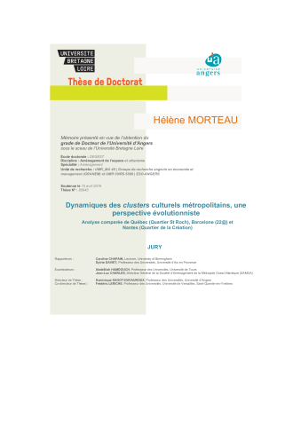 Hélène Morteau. Dynamiques des clusters culturels métropolitains, une perspective évolutionniste : Analyse comparée de Québec (Quartier Saint-Roch), Barcelone ( 22@) et Nantes (Quartier de la Création) . Géographie. Université d'Angers, 2016. Français. ⟨tel-01397012⟩