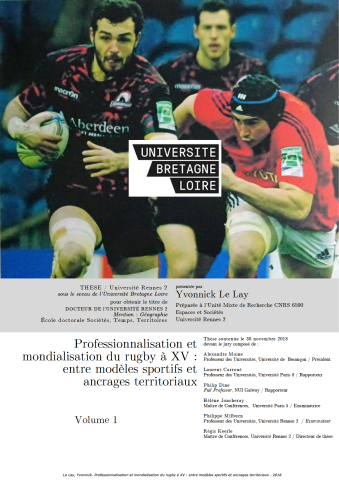 Yvonnick Le Lay. Professionnalisation et mondialisation du rugby à XV : entre modèles sportifs et ancrages territoriaux. Géographie. Université Rennes 2, 2018. Français. ⟨NNT : 2018REN20060⟩. ⟨tel-02275788v2⟩