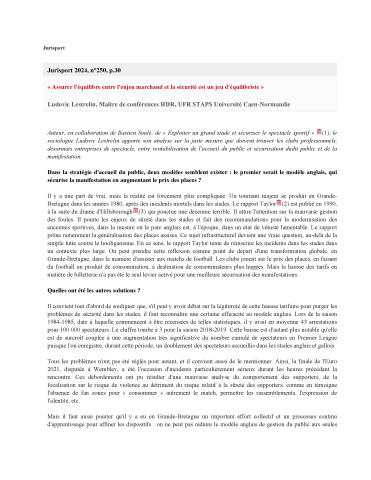 Ludovic Lestrelin. Assurer l'équilibre entre l'enjeu marchand et la sécurité est un jeu d'équilibriste : Entretien avec Ludovic Lestrelin. Jurisport, 2024, pp.30-32. ⟨hal-04683576⟩