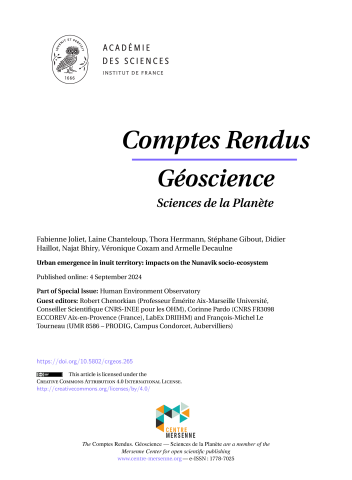 Fabienne Joliet, Laine Chanteloup, Thora Herrmann, Stéphane Gibout, Didier Haillot, et al.. Urban emergence in inuit territory: impacts on the Nunavik socio-ecosystem. Comptes Rendus. Géoscience, 2024, 356, pp.1 - 19. ⟨10.5802/crgeos.265⟩. ⟨hal-04691890⟩