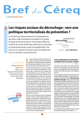 Gérard Boudesseul, Yvette Grelet, Céline Vivent. Les risques sociaux du décrochage. Céreq Bref, 2012, 304, pp.1--4. ⟨hal-05004743⟩