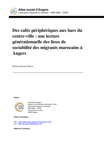 Based on fieldwork conducted in Angers between 2019 and 2023 (Elbichr, 2024), this article offers a spatial analysis of the social practices of Moroccan migrants and their heirs. The latter are included within the broader category of the migrant population, even though they were born and/or raised in France. This choice is rooted in the way this population is socially perceived and categorized, rather than in a legal or juridical definition of the term “migrant.” Drawing on interviews and observations carried out across multiple sites, the article aims to show how social and spatial practices vary across migrant generations, and how these variations reflect cultural legacies, identity aspirations, and differentiated strategies of urban appropriation.