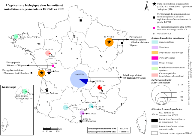 Organic farming in French National Research Institute for Agriculture, Food and the Environment (INRAE) experimental units and stations in 2023