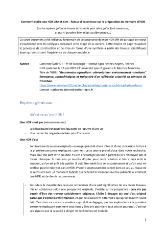 Catherine Darrot. Retour d’expérience sur la préparation du mémoire d’HDR (suggestions pour en faciliter la conception et la rédaction). 2025. ⟨hal-05405049⟩