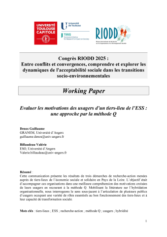 Guillaume Denos, Valérie Billaudeau. Evaluer les motivations des usagers d’un tiers-lieu de l’ESS : une approche par la méthode Q. Congrès RIODD 2025, Université Toulouse Capitole, Oct 2025, Toulouse, France. ⟨hal-05321941⟩