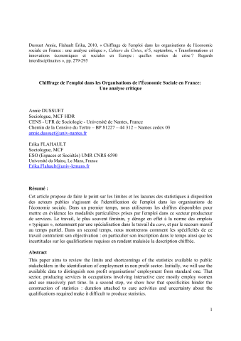 Chiffrage de l'emploi dans les organisations de l'économie sociale en France : une analyse critique