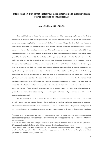 « Interprétation d’un conflit : retour sur les spécificités de la mobilisation en France contre la loi Travail (2016) »