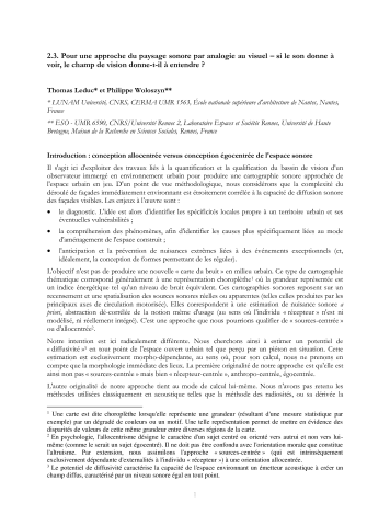 Thomas Leduc, Philippe Woloszyn. Pour une approche du paysage sonore par analogie au visuel - si le son donne à voir, le champ de vision donne-t-il à entendre ?. Claire Guiu; Guillaume Faburel; Marie-Madeleine Mervant-Roux; Henry Torgue; Philippe Woloszyn. Soundspaces - Espaces, expériences et politiques du sonore, Presses Universitaires de Rennes, pp.241-250, 2015, 978-2-7535-3460-5. ⟨hal-01347179⟩