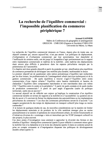 Arnaud Gasnier. La recherche de l'équilibre commercial : l'impossible planification du commerce périphérique ?. Commerce et mobilité, Sep 2007, Dijon, France. ⟨halshs-00201459v2⟩