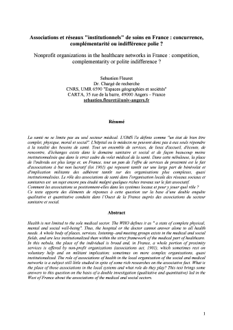 Associations et réseaux "institutionnels" de soins en France : concurrence, complémentarité ou indifférence polie ? Nonprofit organizations in the healthcare networks in France : competition, complementarity or polite indifference ?