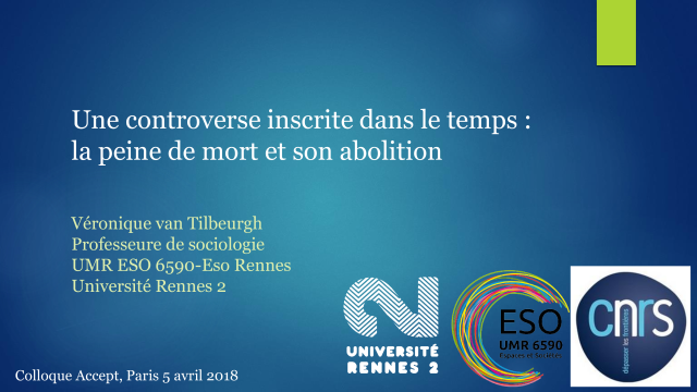 Véronique van Tilbeurgh. Une controverse inscrite dans le temps : La peine de mort et son abolition. Controverse sur l'élevage : comprendre et agir, Apr 2018, Paris, France. ⟨halshs-01865298⟩