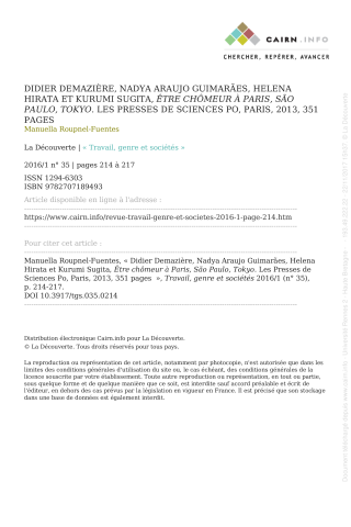 Être chômeur à Paris, São Paulo, Tokyo . 2016, pp.214-217. ⟨10.3917/tgs.035.0214⟩. ⟨hal-01644795⟩