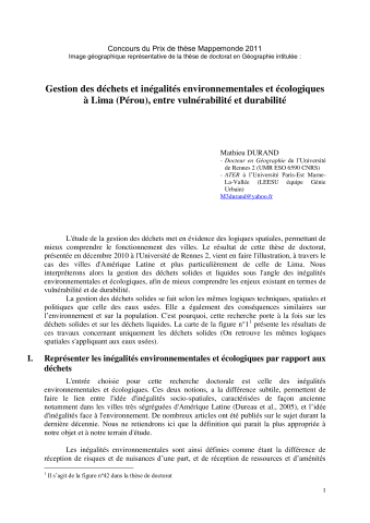 Gestion des déchets et inégalités environnementales et écologiques à Lima (Pérou), entre vulnérabilité et durabilité