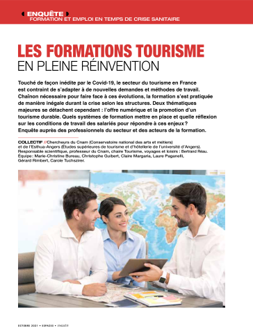 Marie-Christine Bureau, Christophe Guibert, Claire Margaria, Laure Paganelli, Gérard Rimbert. Les formations tourisme et pleine réinvention. Revue Espaces, Editions Espaces, 2021. ⟨halshs-03481961⟩