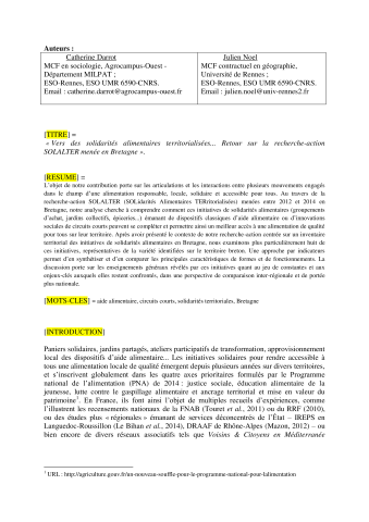 Catherine Darrot, Julien Noel. Vers des solidarités alimentaires territorialisées... Retour sur la recherche-action SOLALTER menée en Bretagne . Anthropology of Food, Anthropology of Food, 2018. ⟨hal-01718364⟩