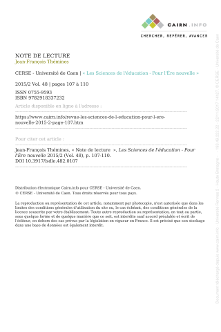 Jean-François Themines. Note de lecture : Panser l'erreur à l'école : de l'erreur au dysfonctionnement / Yves Reuter. Les Sciences de l'éducation pour l'ère nouvelle : revue internationale, CERSE, Université de Caen, 2015, 48 (2), pp.107 - 110. ⟨10.3917/lsdle.482.0107⟩. ⟨hal-01644635⟩