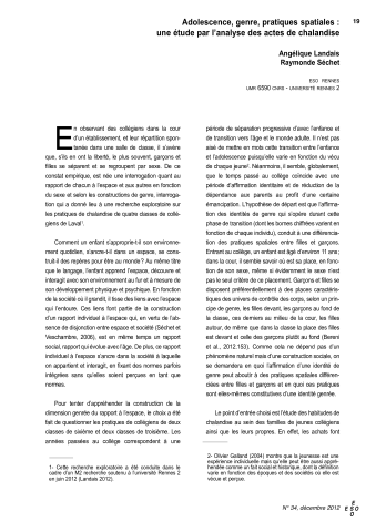 Angélique Landais, Raymonde Séchet. Adolescence, genre, pratiques sociales: une étude par l'analyse des actes de chalandise. ESO Travaux et Documents, Espaces et SOciétés - UMR 6590, 2013, pp.19-28. ⟨halshs-01341011⟩