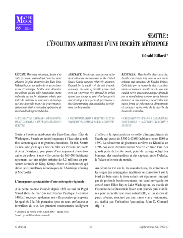 Gerald Billard. Seattle : l'évolution ambitieuse d'une discrète métropole. M@ppemonde, Maison de la géographie, 2002, 68 (4), pp.30-35. ⟨hal-01626776⟩