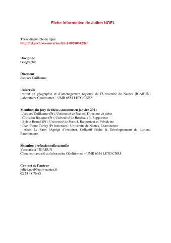 Julien Noel. Regards géographiques sur la mondialisation halieutique. L’altermondialisation et les formes de résistance des « pêches artisanales. Carnets de géographes, UMR 245 - CESSMA, 2012. ⟨hal-02420854⟩