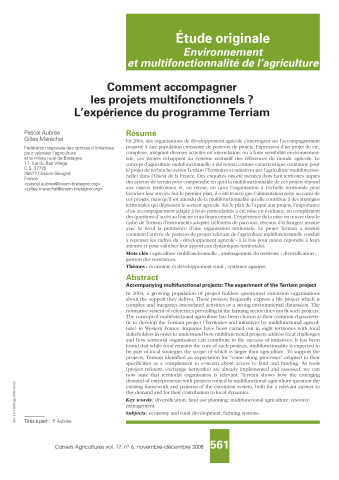 Pascal Aubrée, Gilles Maréchal. Comment accompagner les projets multifonctionnels ? L'expérience du programme Terriam. Cahiers Agricultures, EDP Sciences, 2008, ⟨10.1684/agr.2008.0242⟩. ⟨hal-02437430⟩