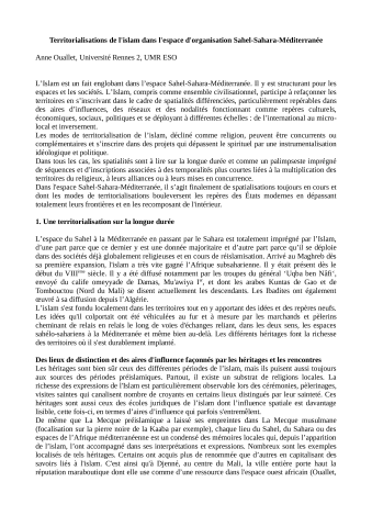 Territorialisations de l'islam dans l'espace d'organisation Sahel-Sahara-Méditerranée