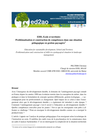 EDD, Ecole et territoire. Problématisation et construction de compétences dans une situation pédagogique en gestion paysagère