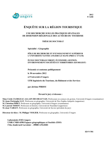 Enquête sur la région touristique. Une recherche sur les pratiques spatiales de dimension régionale des acteurs du tourisme.