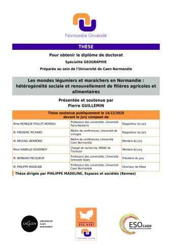 Pierre Guillemin. Les mondes légumiers et maraîchers en Normandie : hétérogénéité sociale et renouvellement de filières agricoles et alimentaires. Géographie. Normandie Université, 2020. Français. ⟨NNT : 2020NORMC024⟩. ⟨tel-03121125⟩