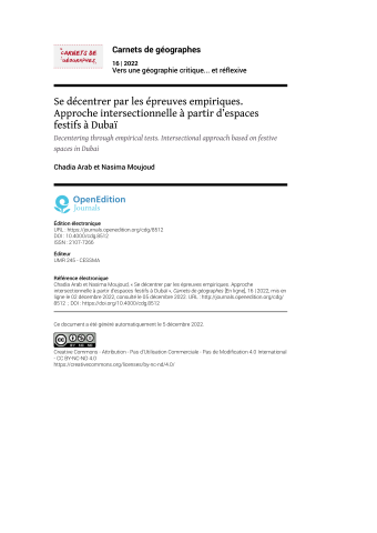 Se décentrer par les épreuves empiriques. Approche intersectionnelle à partir d’espaces festifs à Dubaï