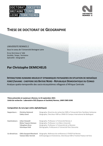 Interactions humains-milieux et dynamiques paysagères en situation de mosaïque forêt/savane : chefferie des Bateke Nord - République Démocratique du Congo