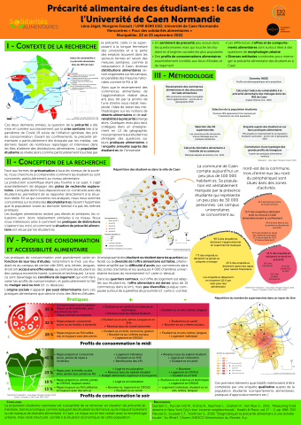 Léna Jégat, Morgane Esnault. Précarité alimentaire des étudiant·es : le cas de l’Université de Caen Normandie. "Pour des solidarités alimentaires" Rencontres sciences-société, Sep 2022, Montpellier, France. . ⟨hal-03787349⟩